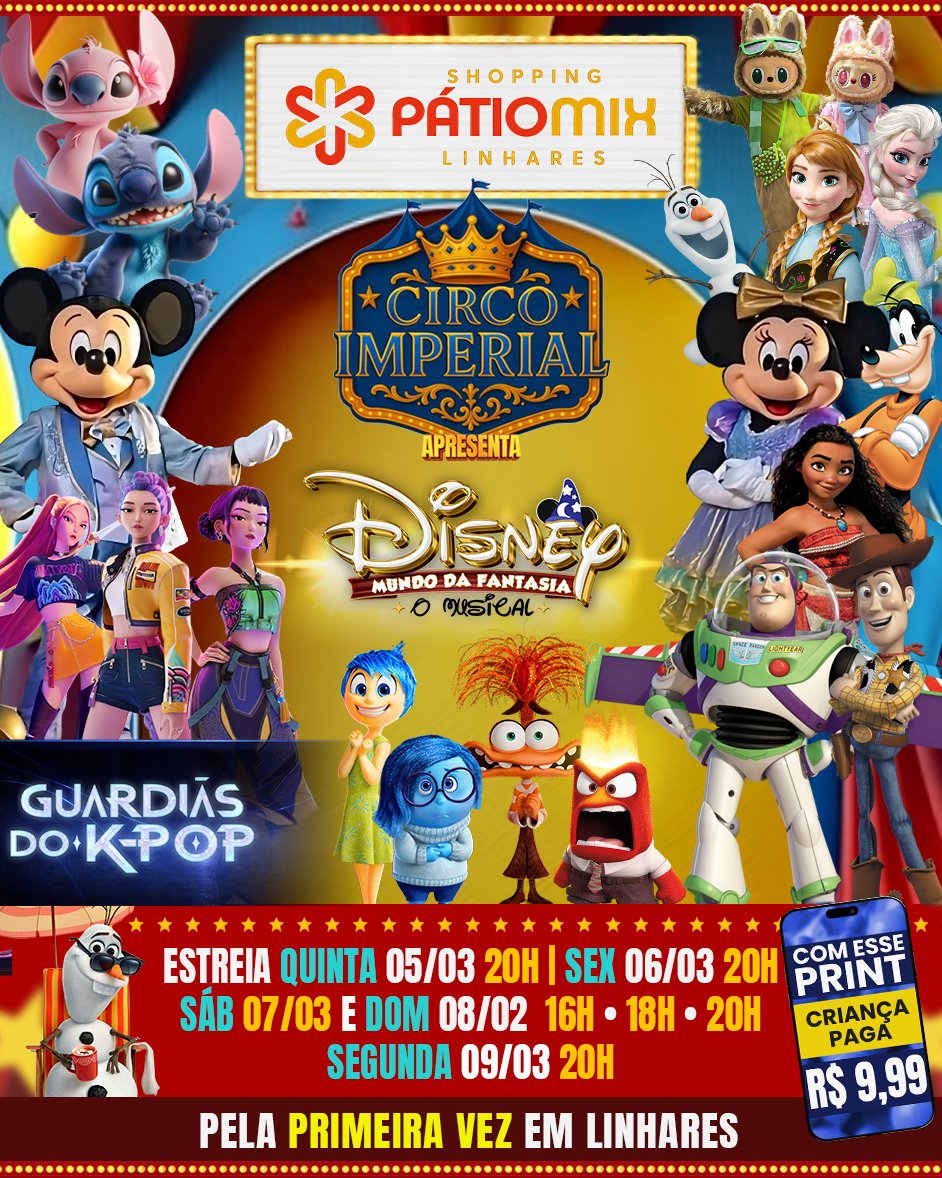 Chegue com 1 hora (uma hora) de antecedência para não perder um segundo do espetáculo.
